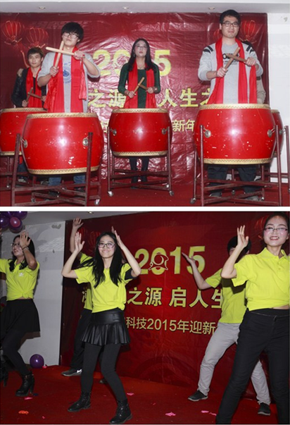 主持人华丽登场。晚会期间,多才多艺的表演纷纷登台亮相,一展源启人的风采。一首斗志昂扬的个人独唱,让年会现场气氛更加活跃。一曲笛子独奏,笛声悠扬;性感热辣的肚皮舞,惊艳四座;一首吉他弹唱,清新文艺;集体共舞小苹果,热情洋溢。实施总监付良军和研发总监曾双共同抽奖,宣布和颁发相关奖品。随后,财务总监吴琼演唱了《春暖花开》,表达了对源启光明前景的信心和美好的祝愿。